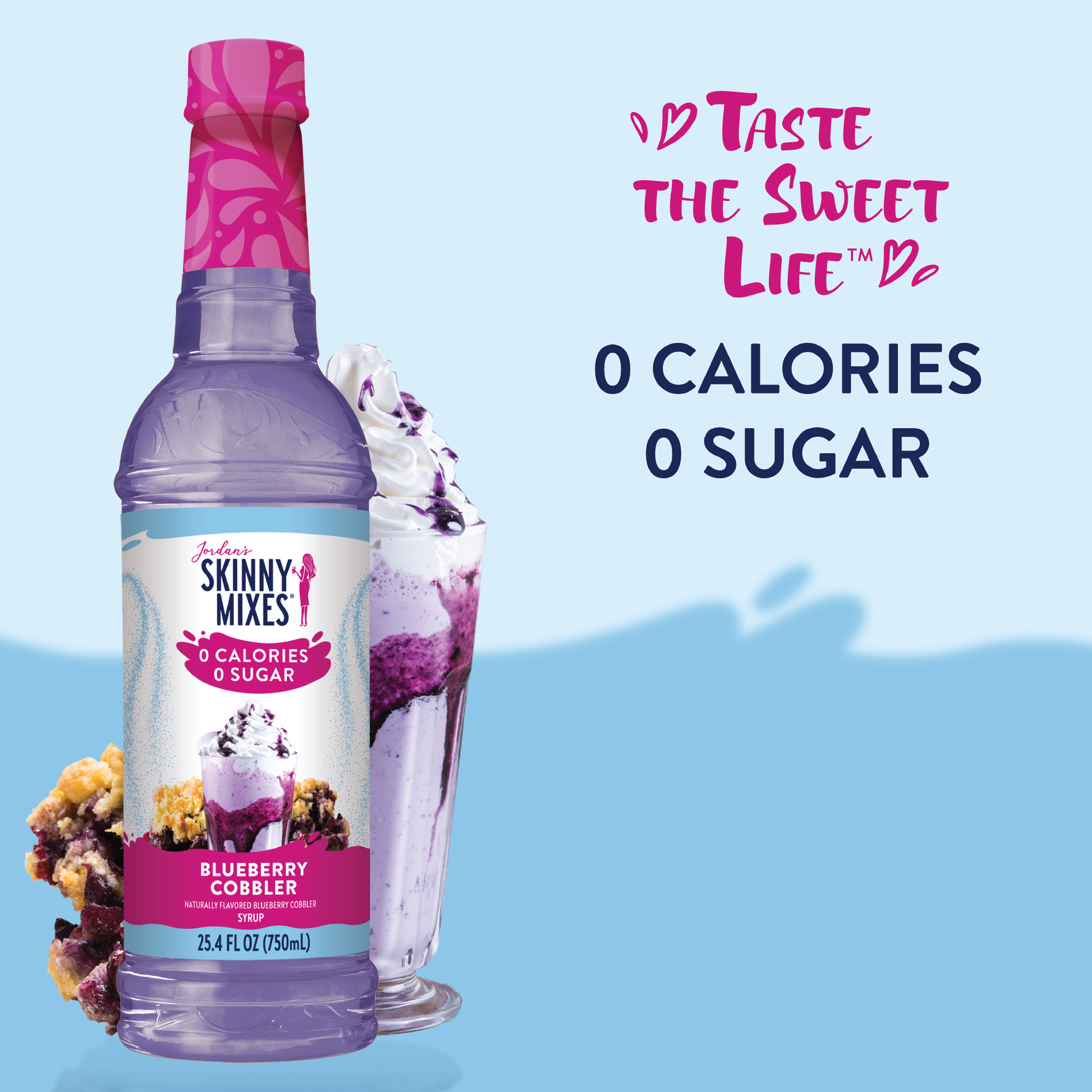 Introducing the newest sensation from Jordan's Skinny Mixes: Sugar Free Blueberry Cobbler Syrup. Delight in the comforting taste of homemade blueberry cobbler without any of the guilt. With 0 sugar, 0 calories, and 0 carbs, indulge freely in this irresistible syrup without compromising your health goals.